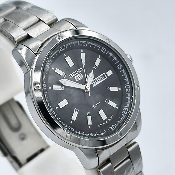 ساعت مردانه سیکو استیل با صفحه مشکی (نمایش روز و تاریخ)